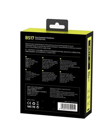 What's included in the package: 1 BS17 Earphone, 1 Type-C Charging Cable, Blue Sound-Proof Memory Sponge Earplug, and a User Manual.