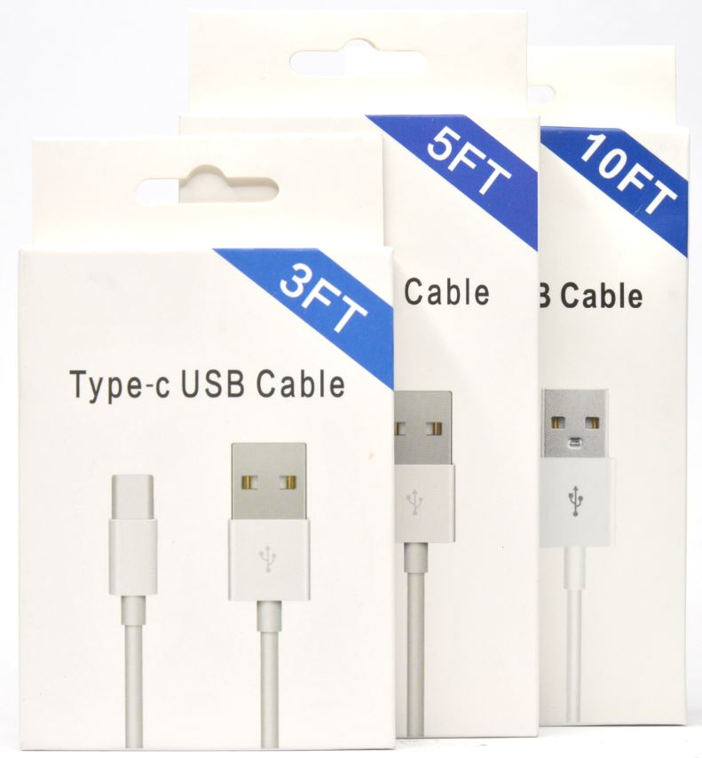 Type-C Cable - 3ft/ 5ft/ 10ft (White Package w/ Blue Corner)