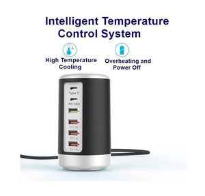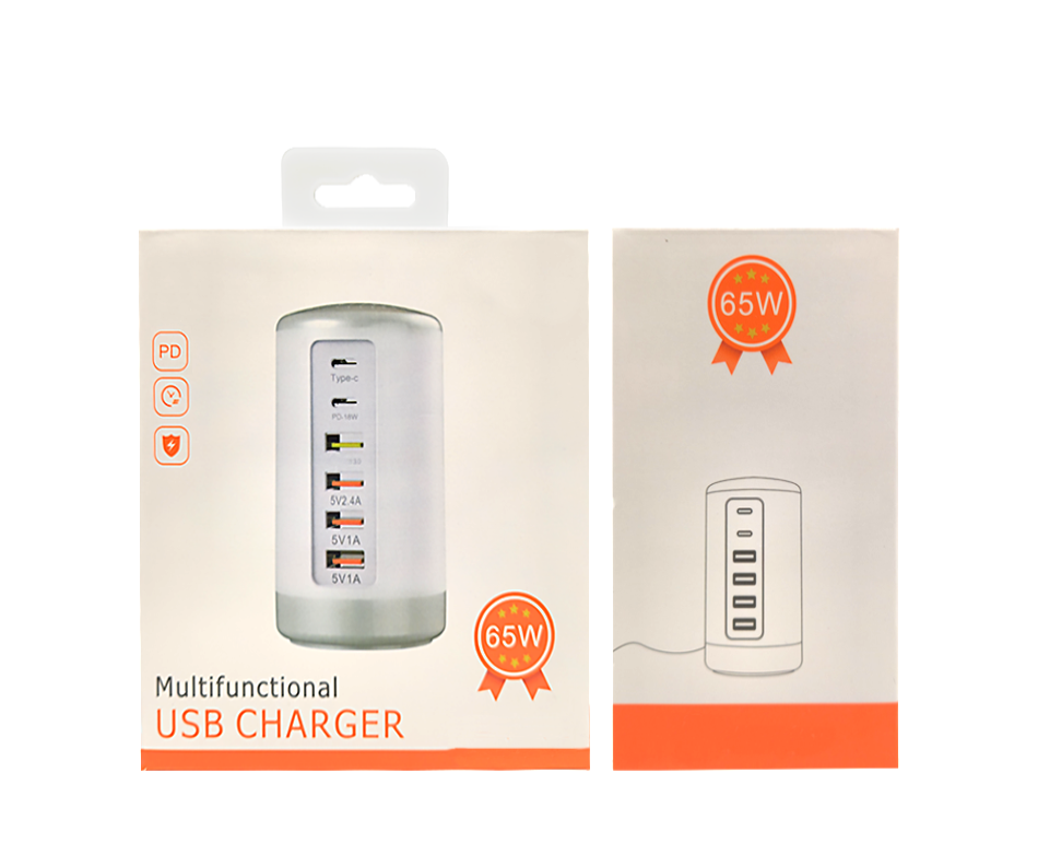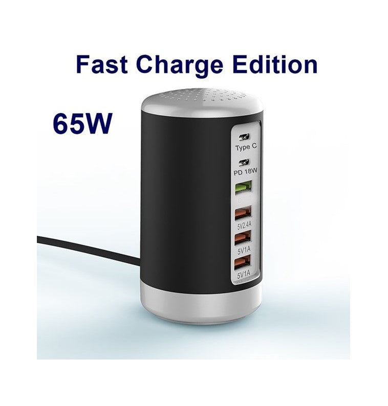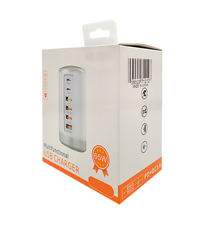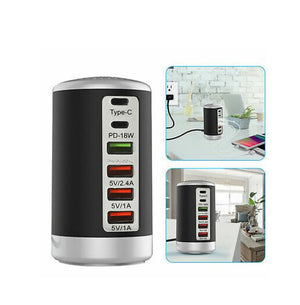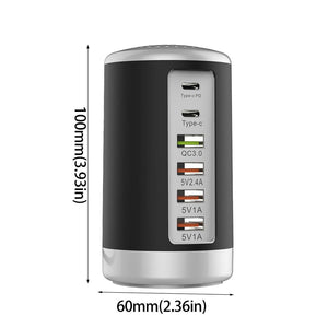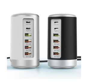6 Port 65W Multifunctional USB Charger Power Adapter (2 Type-C + 4 USB, Round Cylindrical)