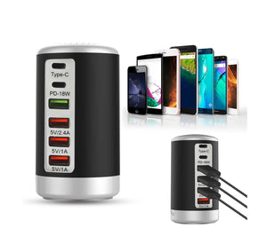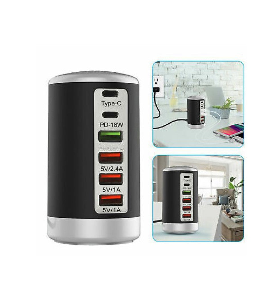 - The 6 port charger takes the latest technology, PD 18W USB-C output, and QC3.0 USB output to deliver Fast charging to your devices.
