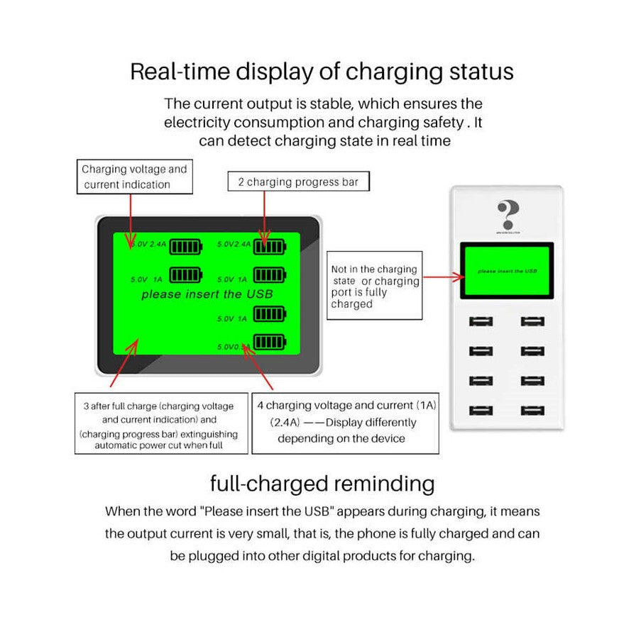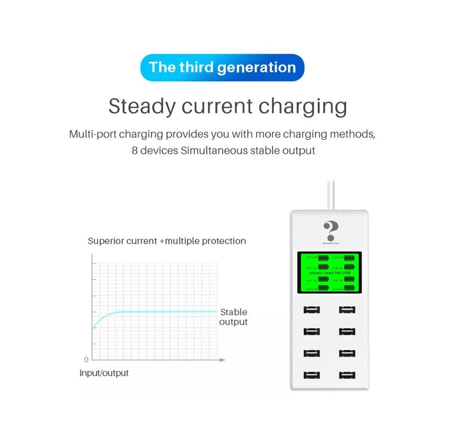 - 40W Portable Multi-functional 8 USB Port with multi-device charging.