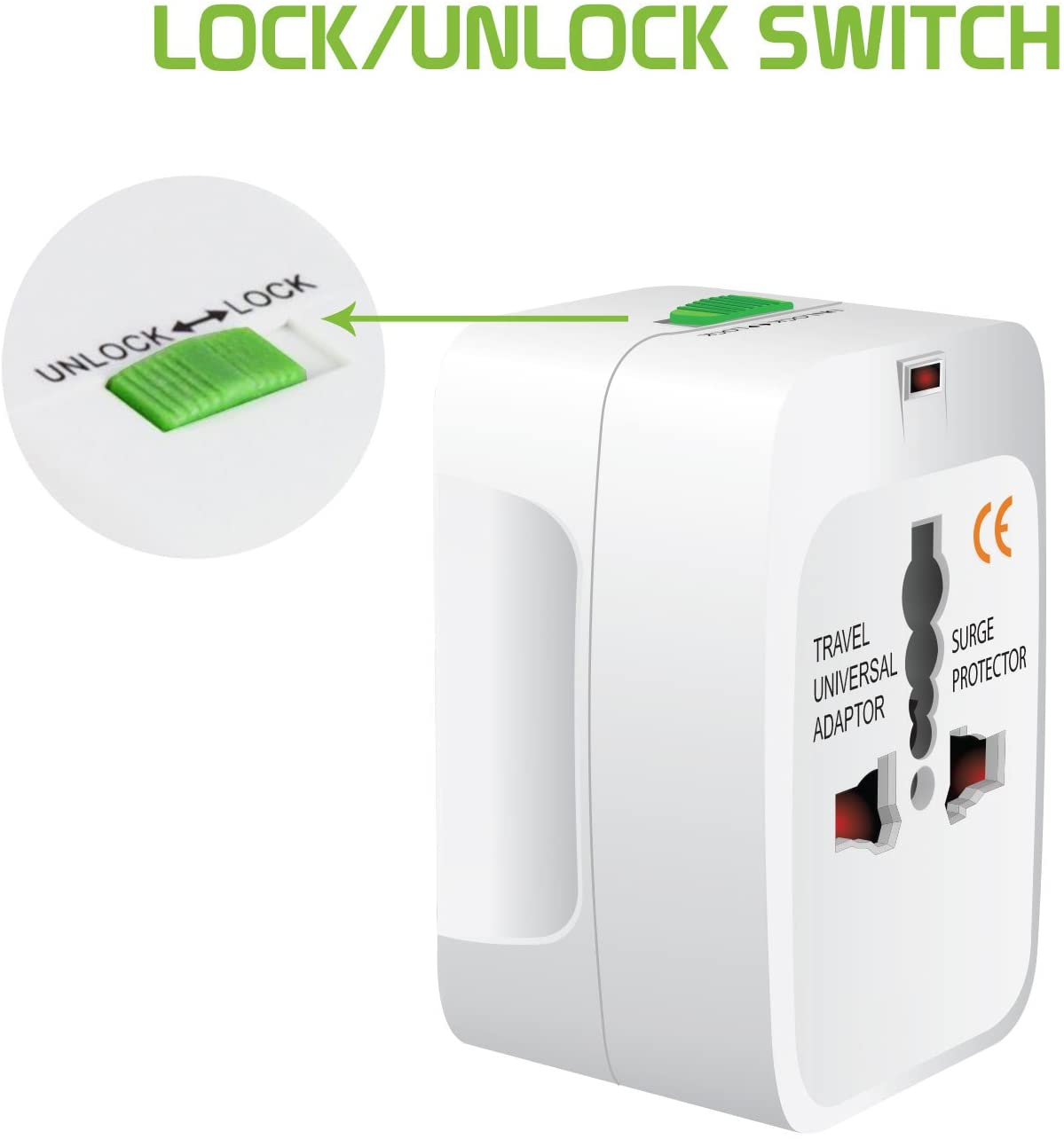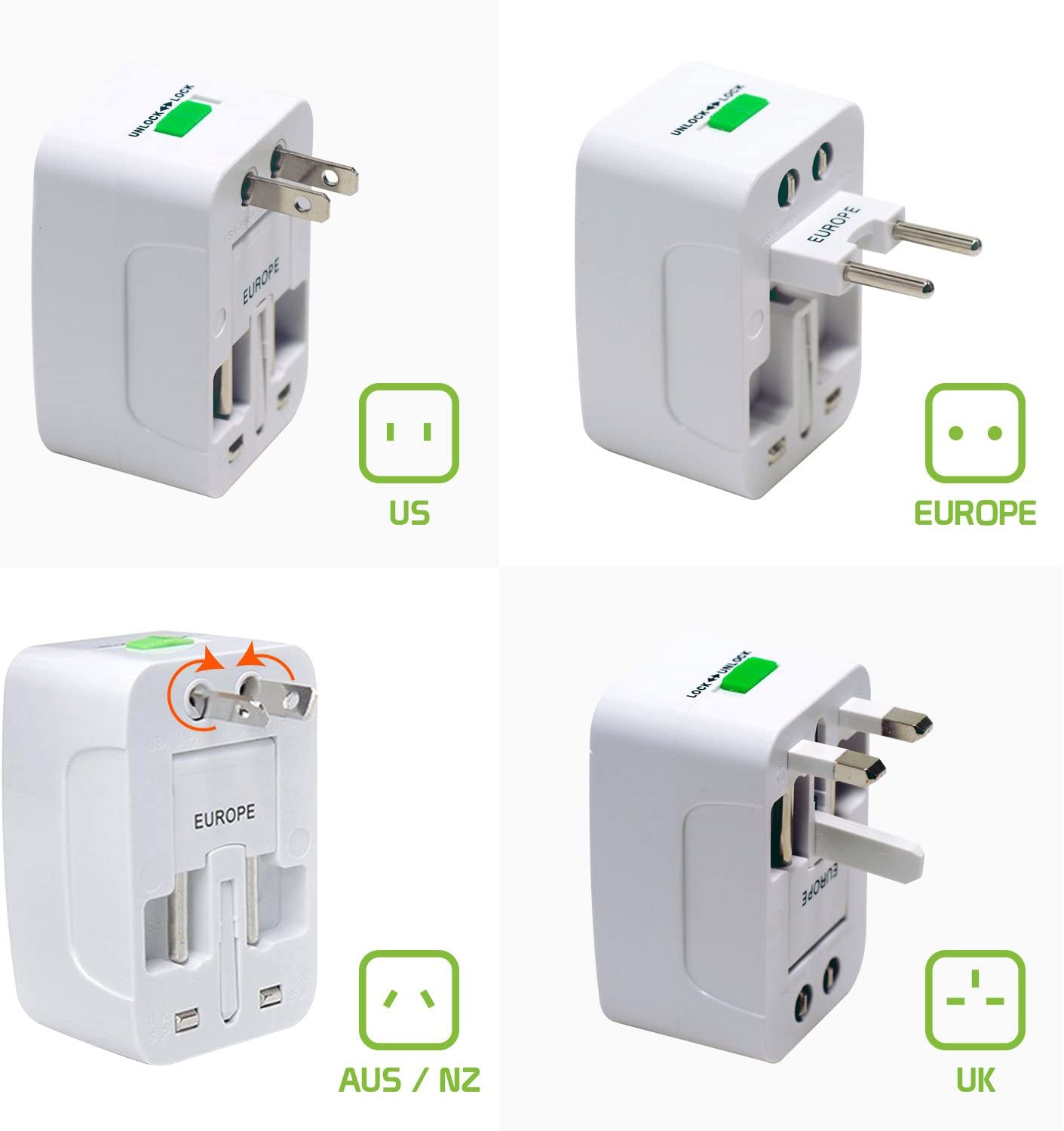 Portable Worldwide Universal Power Adapter Converter All in One International Out of Country Travel Wall Charger Plug for Wall Plug Input in USA, EU, UK, and AUS & More Outlets.