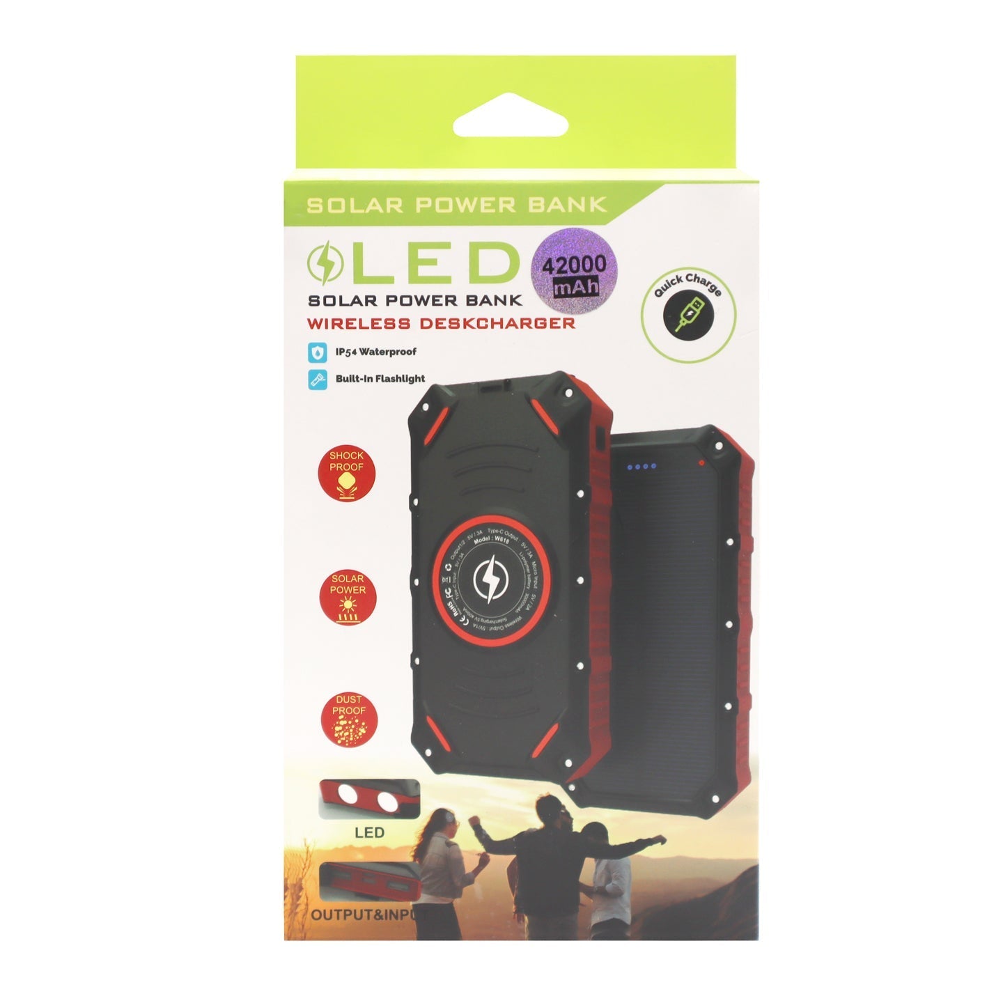 Power Bank - Solar Wireless Charging W/LED Light (42000mah)