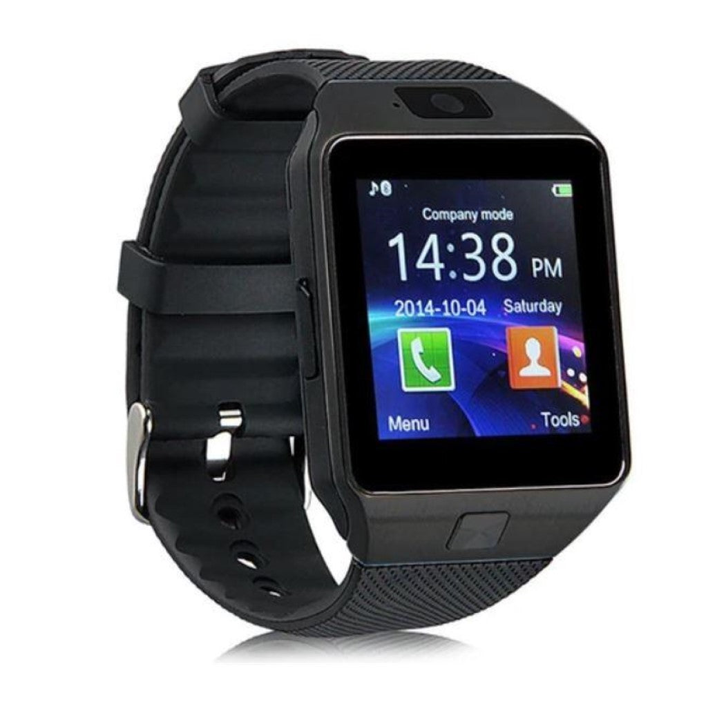 1 DZ07 Smart Watch, A charging Cable, and a Manual Outlet.