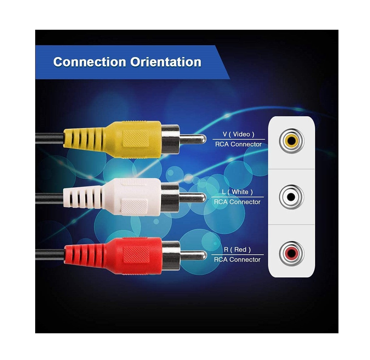 - Type of cable: Composite (Yellow) RCA Video & (White, Red) Stereo Audio Connectors.