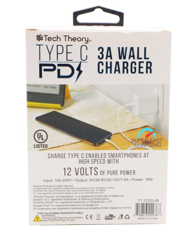 Tech Theory- USB Type- C 3A Wall Charger (12 Volt Of Power)