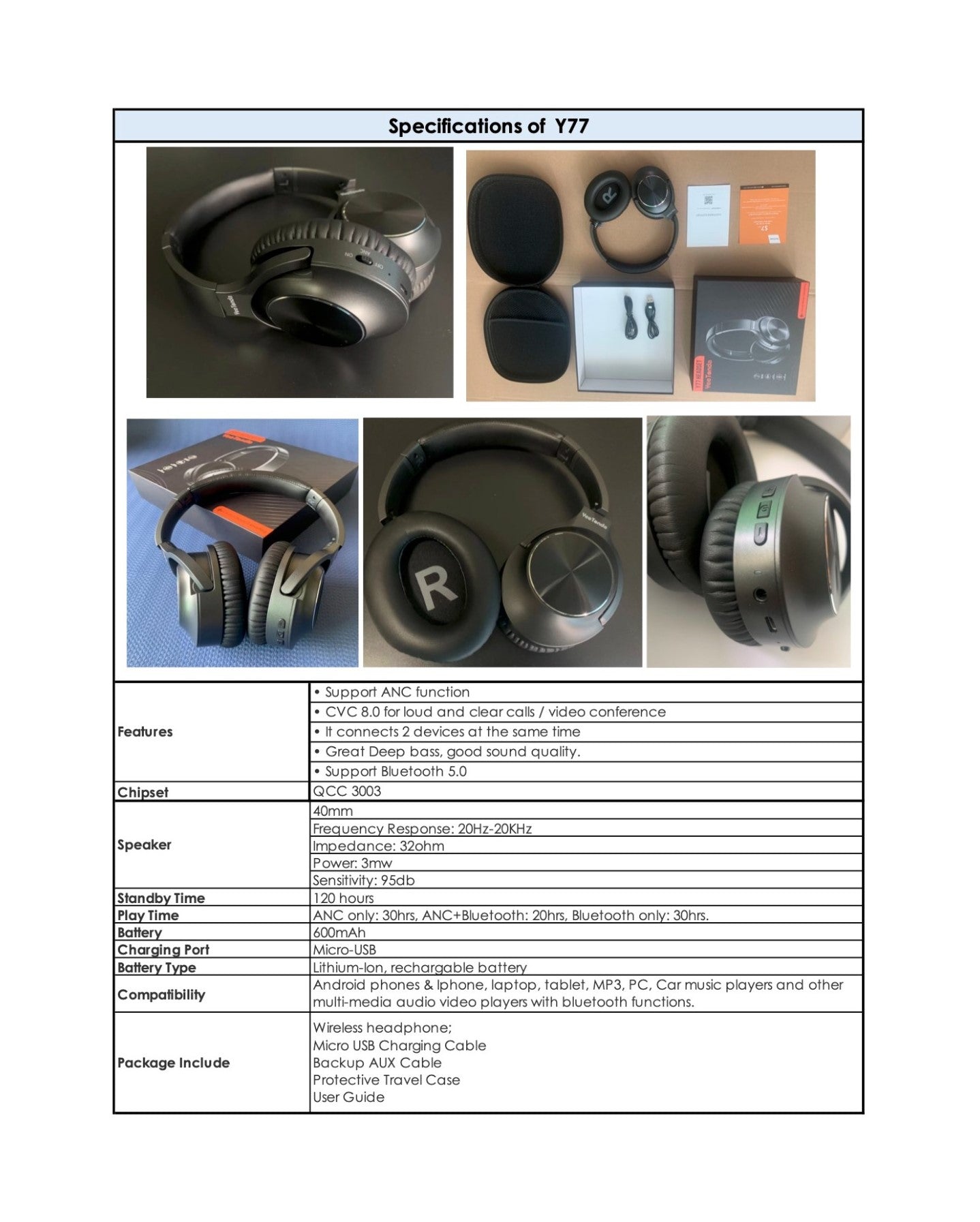 Yee Tonda Active Noise Cancelling Wireless Headphones (Y77)