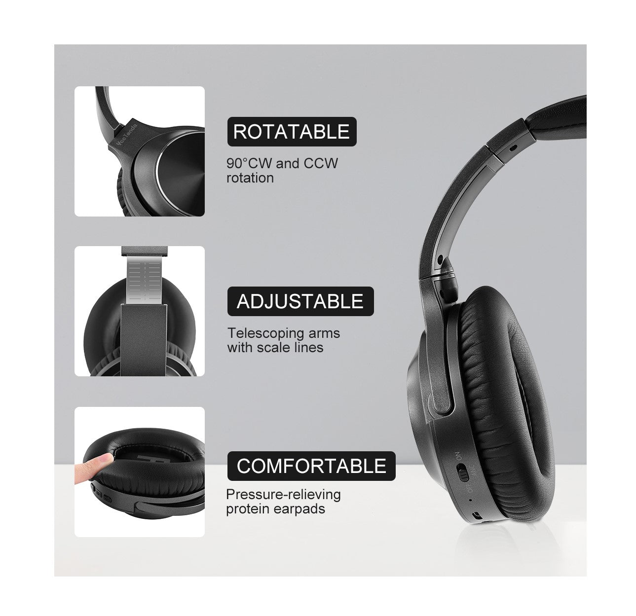 - Breathable mesh & soft memory-protein earpads.